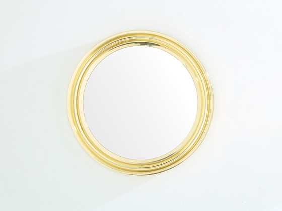 Met zijn subtiele geometrische ontwerp werd deze opvallende ronde messing spiegel Narciso eind jaren 1960 ontworpen door de Italiaan Sergio Mazza voor Artemide. Een perfecte spiegel voor een kleine console, badmeubel of poederkamer. Gevonden in zeer goede vintage staat.