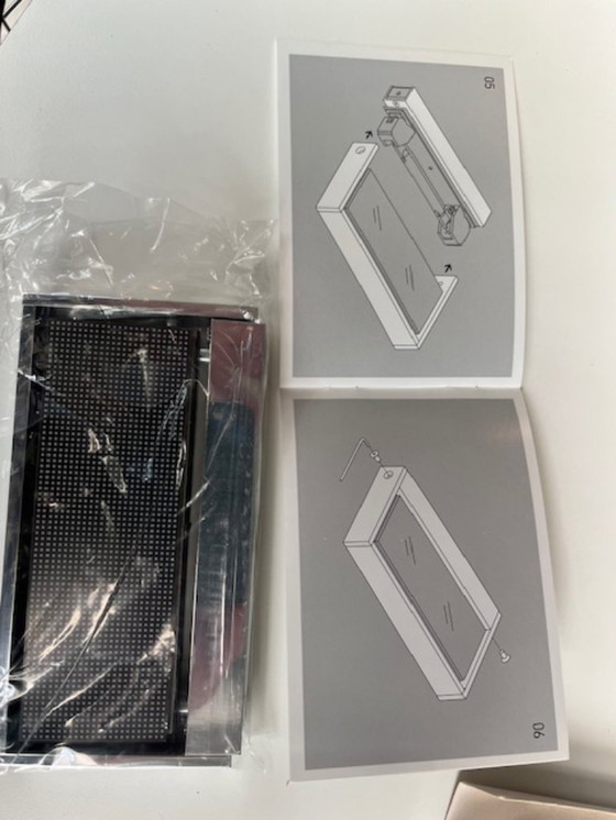 Nieuw in de verpakking, originele code Serien is SM3176, genaamd SML Wall L, nieuwprijs is 385,00 incl. btw. lamp R7s incl. en incl. schroeven. Lengte 17 cmxn8,5 diepx2,5 cm hoog. Excl. Extra optie: mirror adapter, alleen nodig als u deze aan een spiegel wil bevestigen.
