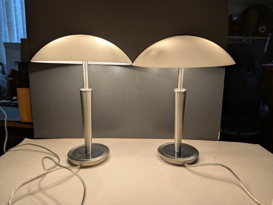Set (2) bureau, tafel-, of nachtkast-lampen. Vintage design.