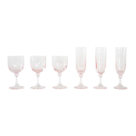 Set roze glazen, Frans design, jaren 70, gemaakt in Frankrijk.