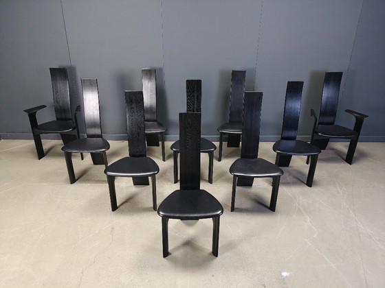 Set van 10 Belgische eetkamerstoelen met hoge rugleuning, jaren 80