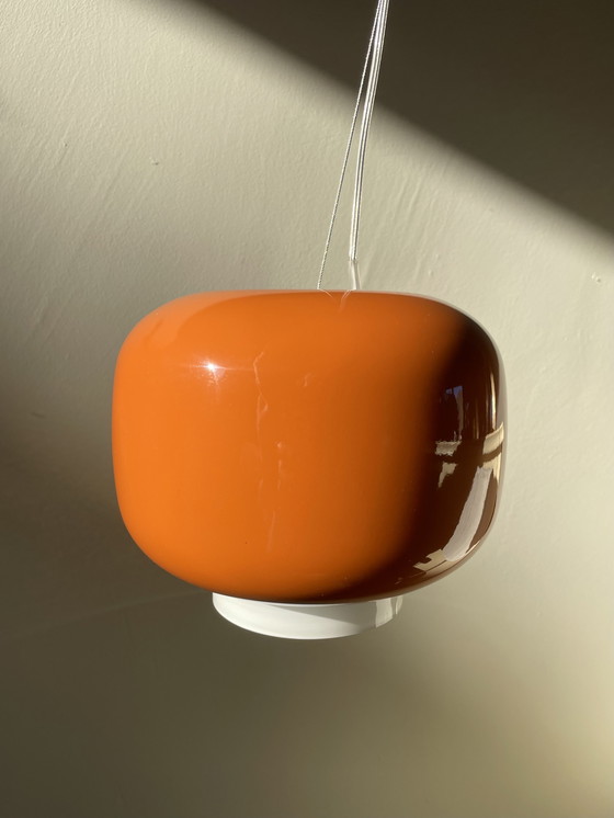Prachtige set van 2 hanglampen in warm-oranje kleur. Geïnspireerd door Foscarini chouchin.