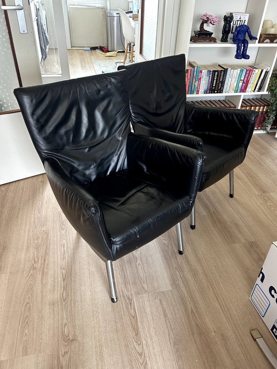 Twee prachtige originele Foxx fauteuils van topontwerper Gerard van den Berg voor Label. Een echte klassieker in de Nederlandse designwereld! Deze stoelen combineren comfort met een tijdloze uitstraling en zijn een aanwinst voor elk interieur.