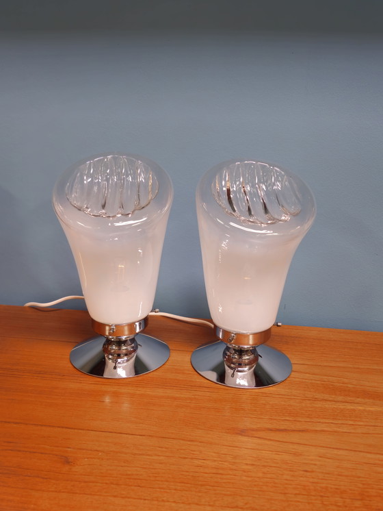 Set Van 2 Tafellampen Murano Italië Bedlampjes Lampen Lamp
