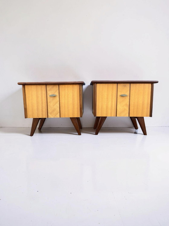 Set van 2 nachtkastjes uit de jaren 60. Vermoedelijk ontworpen door Louis van Teeffelen en in uitstekende staat.