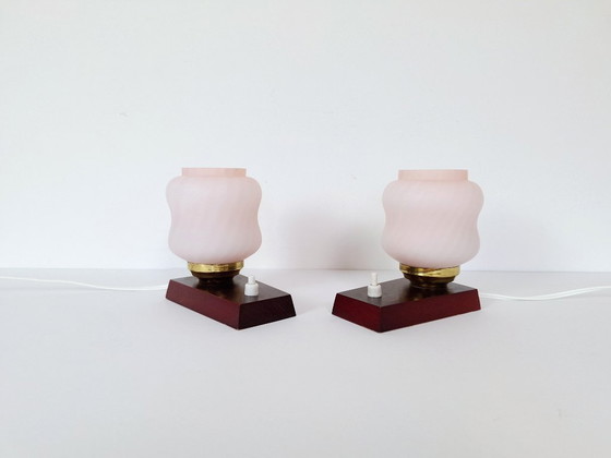 Set van 2 vintage nachtlampjes / roze nachtlampjes / retro lampen / Emi Poljcane lampen / gemaakt in Joegoslavië