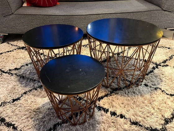 Set van 3 moderne bijzettafels met draadmand - koper met zwart