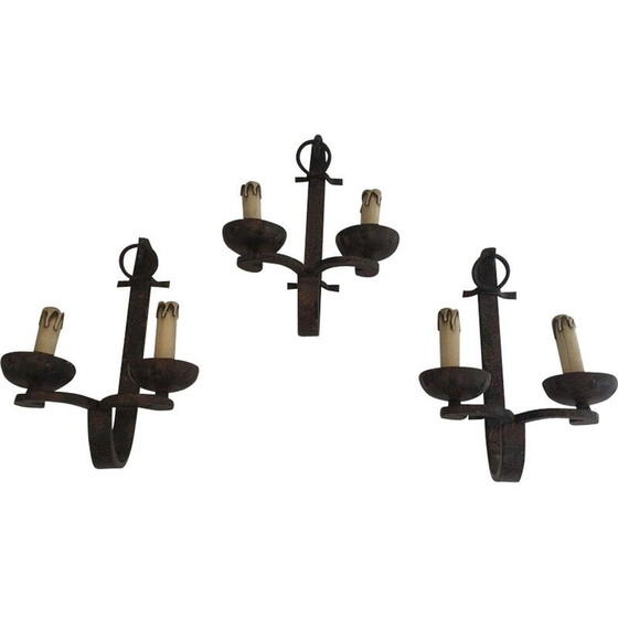 Set van 3 vintage smeedijzeren wandlampen, Frankrijk 1950