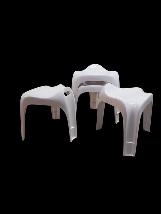 Set van 4 Casalino krukken ontworpen door Alexander Begge en geproduceerd door Casala. Handgreep aan de achterkant. HxBxD= 48cm x 48cm x 42cm, zithoogte 43cm