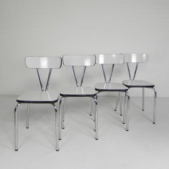 Deze 4 klassieke Formica stoelen verkeren, ondanks hun leeftijd, in prima staat.