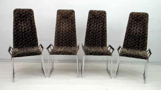 Set van 4 Mid Century Moderne Italiaanse Verchroomd Staal en Fluwelen Eetkamerstoelen 1970