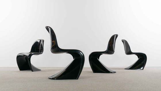 SET VAN 4 PANTON STOELEN IN ZWART, ONTWORPEN DOOR VERNER PANTON VOOR HERMAN MILLER, 1971