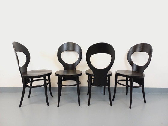 Set van 4 vintage Baumann Mouette stoelen in zwart hout uit de jaren 70.