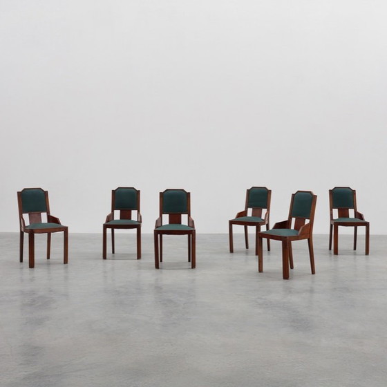 Set van 6 Art Deco eetkamerstoelen in hout met originele bekleding, België jaren 30