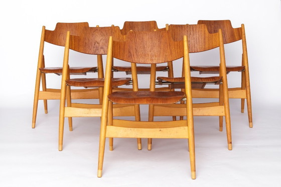 Set van 6 Egon Eiermann SE18 opvouwbare stoelen – Wilde + Spieth, jaren 50, vintage stoelen van teakhout en beukenhout