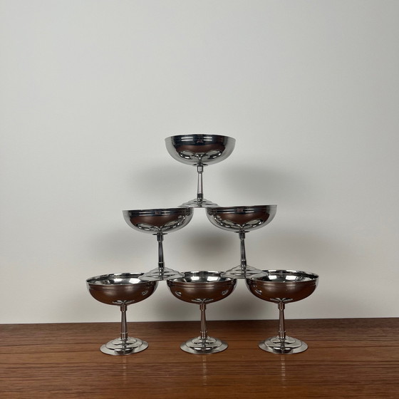 Set van 6 Letang Remy ijsbekers met hoge voet, roestvrij staal