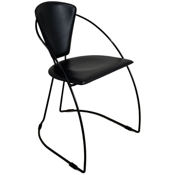 Set van 6 moderne Italiaanse stoelen van zwart metaal en leer, jaren 80