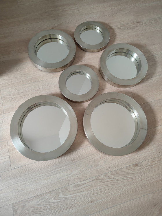 Deze set van 6 moderne en industriële spiegels is een stijlvolle toevoeging aan elk interieur. De spiegels hebben een robuuste metalen rand die een industriële uitstraling geeft, terwijl het gladde glas zorgt voor een moderne touch. Perfect voor het creëren van een ruimtelijk effect in uw woonkamer, hal of slaapkamer. De spiegels zijn veelzijdig en kunnen zowel samen als apart worden opgehangen voor een unieke decoratieve look. 3 verschillende formaten nl. 31cm/38cm/45cm. 3cm hoog.