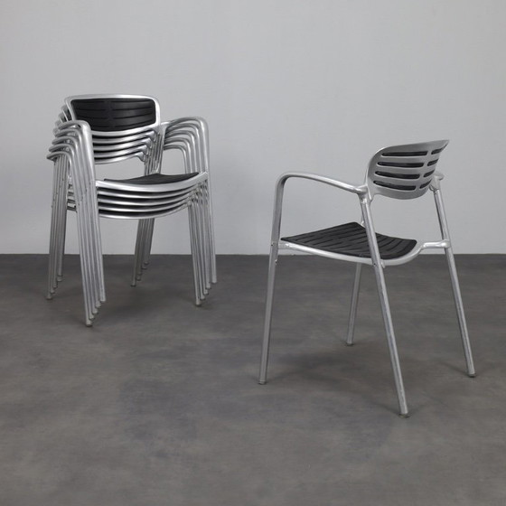 De "Toledo" stoel, ontworpen door Jorge Pensi in 1986 voor Amat, is een icoon geworden van modern Spaans design. De volledig in aluminium gegoten stoel combineert lichtheid, kracht en sculpturale elegantie. De vloeiende, organische lijnen zijn zowel ergonomisch als architectonisch, waardoor het een fantastisch ontworpen tijdloos model is dat geschikt is voor zowel binnen als buiten. De "Toledo", erkend als designklassieker, maakt deel uit van permanente museumcollecties over de hele wereld en blijft zeer gewild om zijn unieke balans van vorm en functie.