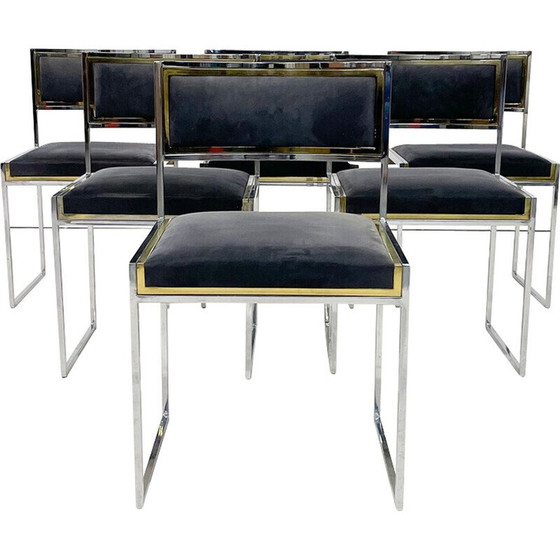 Set van 6 eetkamerstoelen in de stijl van Willy Rizzo, Italië, jaren 1970 - Origineel wandtapijt