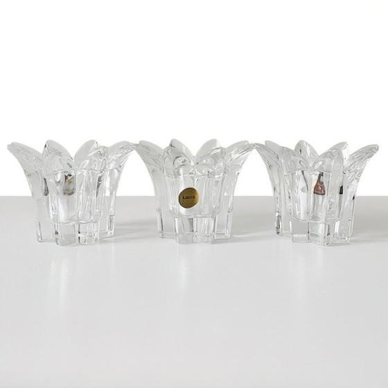 Set van drie vintage Italiaanse Royal Crystal Rock Laurus Star loodkristal waxinelichthouders uit de jaren 80.