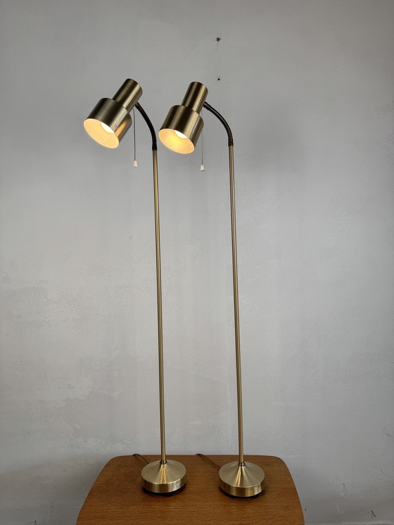 Set Zweedse Messing Vloerlampen – Mid-Century Verstelbaar Ontwerp
