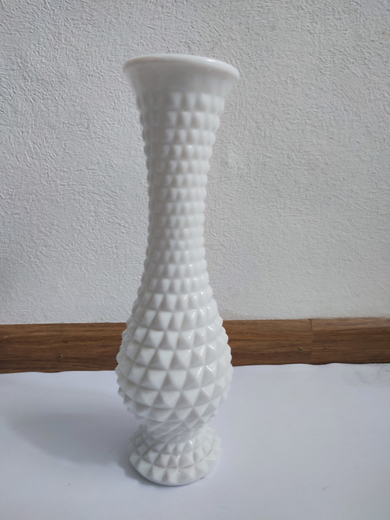 Seventies Retro Witte opaline wit glas glazen vaas diamant patroon