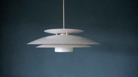 In de jaren '80 ontwierp HORN Belysning in Denemarken een strakke, witte lamp: model 760. De lamp, met zijn gladde, witte kom en een diameter van 45 cm, was een typisch voorbeeld van functioneel Scandinavisch design - eenvoudig maar elegant. Ze hing waarschijnlijk in vele Deense keukens of woonkamers, waar ze een zacht licht verspreidde. Ook nu nog straalt deze vintage lamp een tijdloze charme uit, perfect voor wie een stukje klassiek Deens design in huis wil halen.