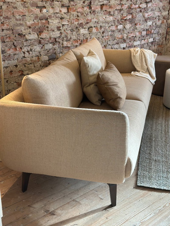 Dit prachtige showmodel Moa uitgevoerd in een linnenmix, staand op walnoothouten poot is nieuw, vlekvrij en wordt in verband met de verbouwing van onze winkel met flinke korting aangeboden. Kom proefzitten; je bent meer dan welkom!
