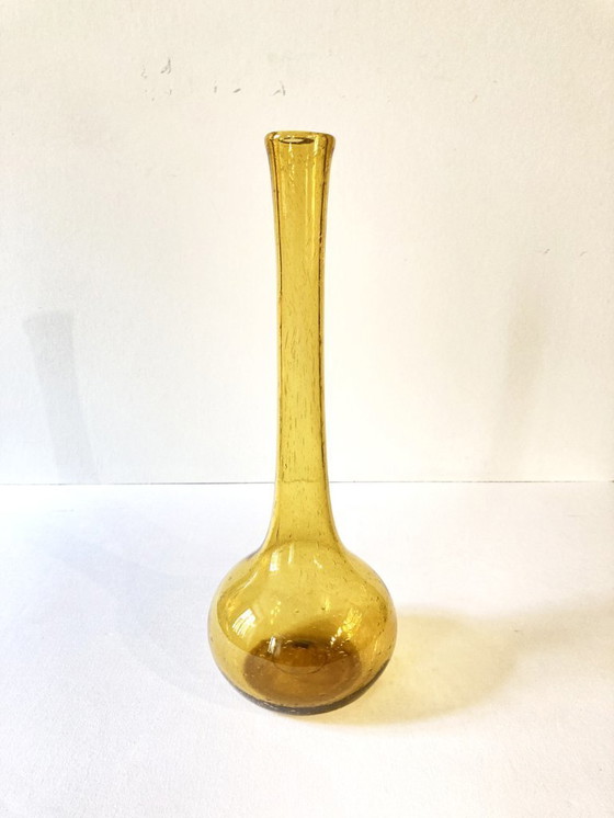 Een soliflore vaas van gebubbeld glas uit Biot, in een prachtige en heldere ambergele kleur. Jaren 50.