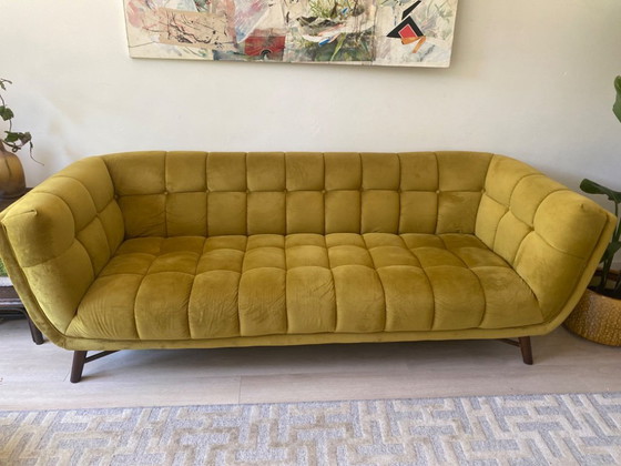 ConditieUitstekendKleurenGoud, GeelMateriaalFluweelAantal stuks1Hoogte75 cmBreedte210 cmDiepte60 cmZithoogte40 cm