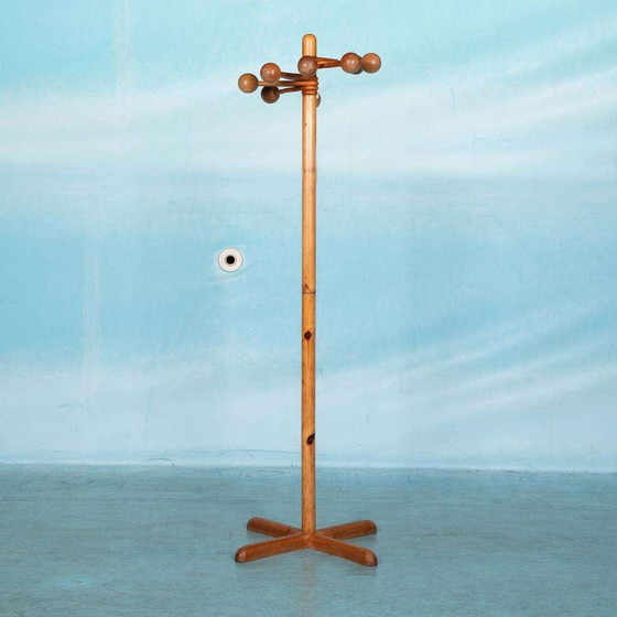 Minimalistisch ontworpen kapstok uit de jaren zeventig, volledig vervaardigd van Scandinavisch vurenhout; een lust voor het oog en een eyecatcher in elke hal of zakelijke ruimte. Dankzij het minimalistische ontwerp past deze kapstok perfect in diverse interieurs, variërend van space age tot Japans, en van bohemian tot Scandinavisch modern.