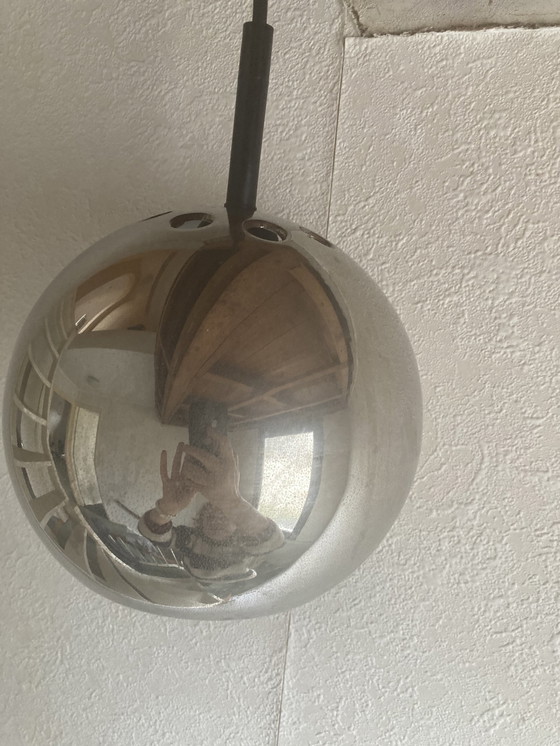 Zilveren Eye ball lamp van Lita France Zilver aan de buitenkant, wit van binnen Space age. Leuk voor boven een kastje of tafeltje