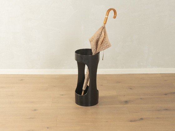 Een opvallend designobject uit de jaren 70 dat alledaagse functionaliteit combineert met de futuristische uitstraling van het ruimtetijdperk. De zwarte paraplubak is ontworpen door Jürgen Lange voor Schönbuch. Het originele fabrikantlabel aan de onderkant bevestigt de authenticiteit van dit ontwerp. Gemaakt van duurzaam kunststof, weerspiegelt het object de innovatieve materiaalkeuze van die tijd. Het precieze vakmanschap en de strakke lijnen benadrukken de tijdloze kwaliteit waar Schönbuch-producten vandaag de dag nog steeds om bekend staan. Dit vintage item is zorgvuldig gereinigd en verkeert in goede staat.