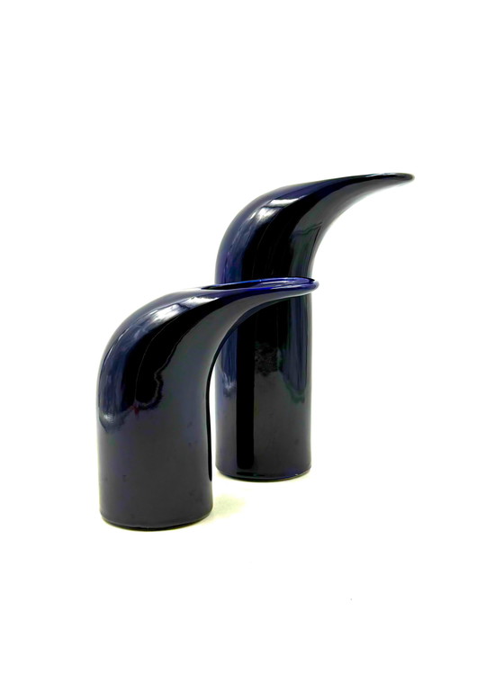 Space age set van 2 blauwe keramische vazen Italië ca. 1970 H 20 cm - 19,5 × 10 cm H 30 cm - 19,5 × 10 cm Condities: uitstekend in overeenstemming met leeftijd en gebruik.