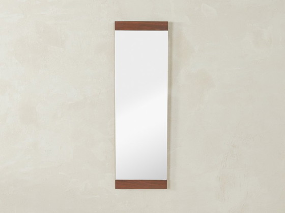 Klassieke spiegel uit de jaren 60. Hoogwaardig spiegeloppervlak op een teakhouten voet. Gemaakt in Duitsland. Ref: 2205054