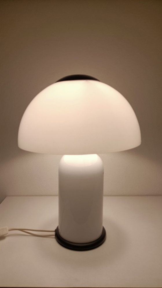 Deze Stelvia paddenstoel tafellamp uit de jaren 70/80 is een charmant voorbeeld van vintage design. Met een hoogte van 47 cm valt deze lamp op door zijn paddenstoelvormige lampenkap die een zacht, uitnodigend licht verspreidt, ideaal om in elke ruimte een warme en uitnodigende sfeer te creëren.