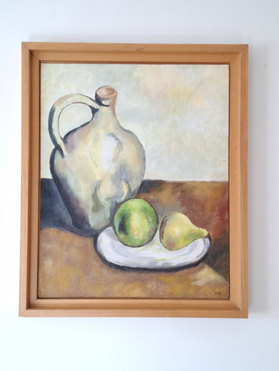 Minimalistisch stilleven op doek. Amerikaanse stijl lijst 45 x 39 cm. Canvas 41 x 33 cm.