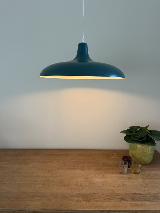 Een Stilnovo lamp uit de jaren 60. Hij heeft een prachtige groenblauwe kleur en een mooie subtiele ronde vorm.