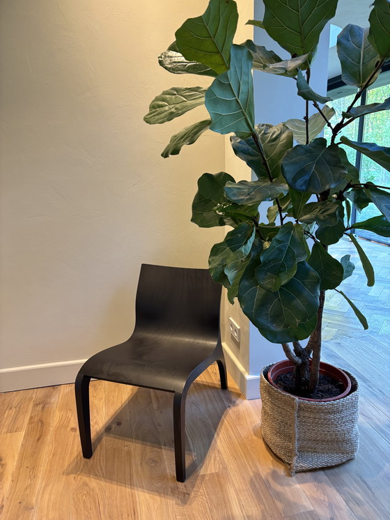 Dit is een strakke en moderne zwarte bijzetstoel ontworpen door Studio Parade. Hij is gemaakt van hoogwaardig hout en heeft een minimalistisch ontwerp dat in elk hedendaags interieur past. De vloeiende rondingen en stevige constructie maken hem zowel stijlvol als functioneel, perfect voor elke woonruimte of kantooromgeving.