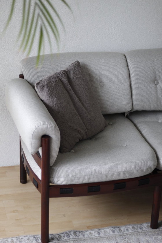 Deze schitterende designbank, ontworpen in de jaren '60 door de gerenommeerde ontwerper Sven Ellekaer voor Coja, is een ware blikvanger. Het prachtige frame is vervaardigd van hoogwaardig palissanderhout.