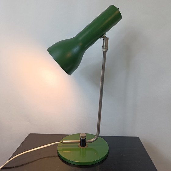Tafellamp Anvia - RL55 Hoogervorst Vintage tafellamp ontworpen door Hoogervorst voor Anvia uit de jaren 50. De lamp is op twee plekken draaibaar namelijk bij de voet via het verstellen van de draaiknop en bij de kap. De lamp is voorzien van wipschakelaar achter op de kap. De lamp heeft een mooie vintage groene kleur die de lamp niet laat misstaan in een vintage of Mid-century interieur. Afmetingen: h43 x b22 xd15. Staat: In goede vintage staat met wat gebruikssporen waaronder een krasje op de kap en wat lichte verwering op het metaal. Let op: vraag voor uw bestemming om verzendkosten op maat! Zie voor meer vintage en design ook mijn overige advertenties. Mocht er iets tussen zitten maar wilt u het eerst komen bekijken, dan is dat uiteraard mogelijk. Neem gerust contact met mij op om een afspraak te maken. Woont u te ver weg of heeft u geen geschikt vervoer? Er zijn altijd opties om het item te laten verzenden, bezorgen of te laten bezorgen via een koeriersdienst.