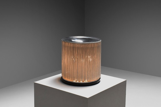 Een zeldzame en sculpturale tafellamp Model 597 in zeer goede staat. Ontworpen door Gianfranco Frattini, vervaardigd door Arteluce, Italië, 1961. Deze opvallende lamp is een toonbeeld van Frattini's verfijnde benadering van modern lichtontwerp, waarbij architectonische structuur wordt gecombineerd met decoratieve zachtheid. De lamp heeft een aluminium behuizing omringd door een kenmerkend stoffen gordijn met franjes, wat een diffuus en sfeervol lichteffect creëert. De binnenkant is voorzien van zes E27-fittingen, terwijl een extra, onafhankelijke E27-fitting aan de bovenkant apart kan worden ingeschakeld, waardoor gelaagde en aanpasbare verlichting mogelijk is. Het samenspel tussen direct en gefilterd licht versterkt de sculpturale uitstraling van het stuk. Deze lamp is een aantrekkelijk voorbeeld van Italiaans design uit de vroege jaren 60 en weerspiegelt de innovatieve geest en technische verfijning die kenmerkend waren voor Arteluce-producten uit die periode. De lamp heeft nog steeds het originele fabriekslabel, wat de authenticiteit en herkomst bevestigt. Details: Ontwerper: Gianfranco Frattini Fabrikant: Arteluce Model: 597 Ontwerpdatum: 1961 Productieperiode: jaren 60 Herkomst: Italië Materialen: Aluminium, stof Bedrading: 6 interne E27-fittingen + 1 aparte E27-fitting aan de bovenkant Gianfranco Frattini (1926-2004) was een invloedrijke Italiaanse architect en ontwerper, die algemeen wordt beschouwd als een sleutelfiguur in het naoorlogse Italiaanse modernisme. Hij studeerde af aan de Politecnico di Milano en kwam op in de levendige Milanese designscene, samen met tijdgenoten zoals Gio Ponti. Frattini's werk kenmerkt zich door een verfijnde balans tussen technische innovatie, vakmanschap en formele helderheid. Hij werkte nauw samen met toonaangevende fabrikanten, met name Arteluce, waar hij een reeks zeer gewaardeerde verlichtingsontwerpen ontwikkelde die nieuwe relaties tussen structuur, materiaal en licht onderzochten. Naast verlichting ontwierp hij meubels en interieurs die de nadruk leggen op modulariteit, functionaliteit en materiaalrijkdom, waarbij hij vaak werkte met hoogwaardige houtsoorten en geavanceerde constructietechnieken. Zijn ontwerpen weerspiegelen een uitgesproken Italiaanse benadering van het modernisme: elegant, rationeel en met een diepgaande aandacht voor detail. Tegenwoordig is het werk van Frattini opgenomen in belangrijke collecties en wordt het nog steeds geroemd om zijn tijdloze kwaliteit en bijdrage aan het 20e-eeuwse design. Arteluce was een van de meest invloedrijke verlichtingsfabrikanten van de 20e eeuw, opgericht in 1939 door Gino Sarfatti in Milaan. Het bedrijf speelde een cruciale rol in de ontwikkeling van modern Italiaans verlichtingsdesign, waarbij technische innovatie werd gecombineerd met verfijnde esthetiek. Arteluce werd een platform voor experimenten en werkte samen met toonaangevende ontwerpers zoals Gianfranco Frattini, wiens werk de vooruitstrevende identiteit van het bedrijf hielp definiëren. De ontwerpen worden gekenmerkt door heldere vormen, geavanceerde techniek en een verfijnd gebruik van materialen, waarbij vaak de grenzen van de verlichtingstechnologie van die tijd werden verlegd. In de naoorlogse periode verwierf Arteluce internationale erkenning, ontving talloze prijzen en leverde een belangrijke bijdrage aan de wereldwijde reputatie van Italiaans design. Tegenwoordig worden de historische modellen beschouwd als iconen van modern design en zijn ze te vinden in belangrijke museumcollecties over de hele wereld.