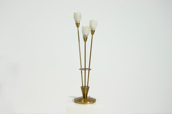 Tafellamp van geborsteld messing en glas, Duitsland, jaren 1970
