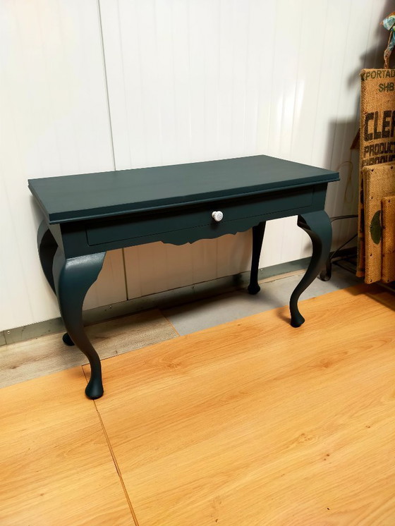 Elegant tafeltje in Queen Ann stijl, perfect voor een klassieke touch in uw interieur. Dit tafeltje is voorzien van een handige lade, ideaal voor het opbergen van kleine spullen. De sierlijke poten en het verfijnde ontwerp maken het een tijdloos stuk. Geverfd in de kleur Cambridge (Fusion Mineral Paint)