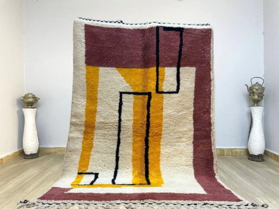 Laat u betoveren door de levendige charme van dit veelkleurige Berberkleed, met zorg vervaardigd uit hoogwaardige wol. Met een royale afmeting van 300 cm bij 200 cm is dit kleed een toonbeeld van de rijke traditie van Berberkunst en brengt het warmte en karakter in elke ruimte.