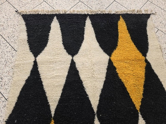 Dompel uzelf onder in de rijke traditie van Marokkaans vakmanschap met dit prachtige vloerkleed van natuurlijke wol. Met indrukwekkende afmetingen van 300 cm bij 200 cm is dit kleed een bewijs van de tijdloze schoonheid en duurzaamheid van Marokkaans design en biedt het zowel esthetische aantrekkingskracht als functionele warmte aan elke ruimte.