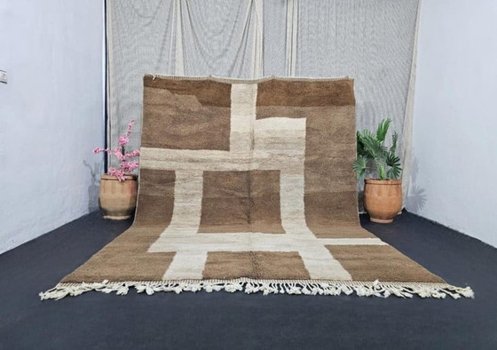 Dompel uzelf onder in het rijke culturele erfgoed van Marokko met dit prachtige Marokkaanse wollen tapijt. Met indrukwekkende afmetingen van 300 cm bij 200 cm is dit stuk een toonbeeld van traditioneel vakmanschap en tijdloos design. De natuurlijke wolvezels zorgen voor een zachte en luxueuze textuur, perfect om warmte en elegantie toe te voegen aan elke ruimte.