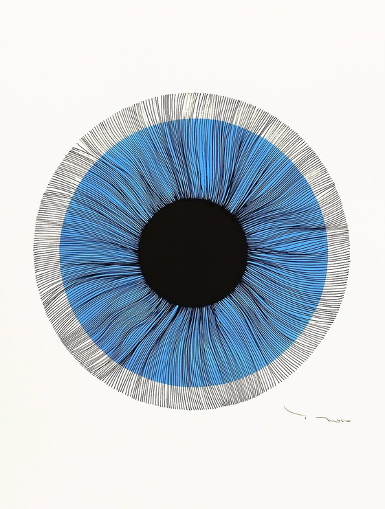 KUNSTENAAR : TEHOS Tekening Potlood inkt en acryl op zwaar kunstpapier 300 grams 65x50 cm Handtekening rechtsonder en Titel en handtekening op achterzijde met kunstenaarscertificaat Titel : Zwart oog - C02 - 2024