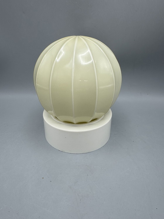 Thabur, plafondlamp, porselein, vintage, melkglas, groen glas, retro, jaren 60, jaren 70, sfeerverlichting, designlamp